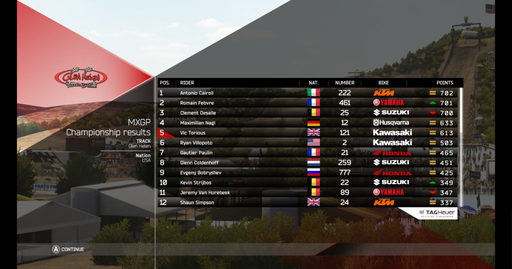 The season started off with Belgium’s Clement Desalle winning the first 4 races, and it quickly looked like Belgium were taking their revenge on the French for pulling away, and even at the halfway point of the season, Desalle looked to be the favourite to take his second title. However, as the season drew to a close, both Antonio Cairoli of Italy and Romain Febvre of France were both drawing their own closes, and closing in on Desalle. In a heartbreaking twist, Desalle would lose the championship lead at his home race in Belgium, and would never regain it. In a further cruel twist, Febvre would overtake Desalle to finish second. Belgium and France would go on to score a combined 3019 points, and considerably pull away from any other competition. However, there was not much movement in the cup as a result of 9 of the 12 nations competing occupying the top 9, and other than Portugal moving back into their all-time high of 18th and South Africa moving from 29th to 24th, there wasn’t really much to document. However, it is worth noting that the top 3 of the championship were separated by 2 points, which goes to show that even in a 36-race season, you can’t write any race off.